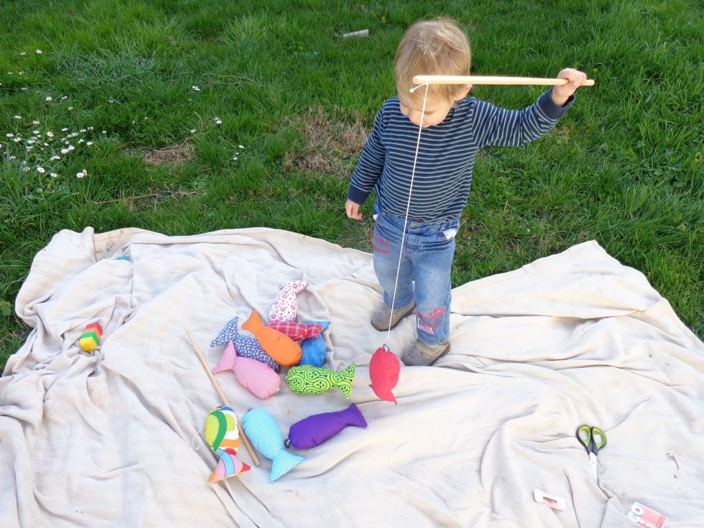 El blog de Elenarte fue para mí amor a primera vista (o al primer clic, para ser más exactos). Tiene tantas cosas bonitas que no sé ni por dónde empezar a contaros. Por ejemplo este juego de pesca, con su caña y los pececitos (vale, no es apto para veganos, pero los peces son de tela y se pueden hacer con pequeños retales sobrantes):